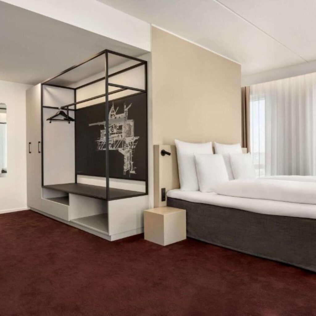 Opened in 2021, the hotel features 484 rooms in a variety of categories, including standard rooms, business-class options and family-friendly suites. The property’s architecture draws inspiration from classic Copenhagen warehouses, with Nordic design elements and an emphasis on natural light and sustainable materials.