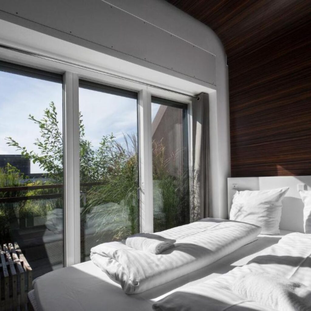 Opened in 2021, Zoku Copenhagen sits in Amager Vest and the property features 160 smart loft-style rooms that combine home, office, and hotel in one. Each unit includes a fully equipped kitchen, modular furniture and a tucked-away lofted bed – making it an idea base for longer stays.