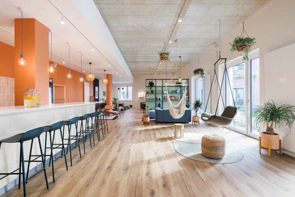 A second location followed in Berlin in 2022, bringing the same flexible living model to the city’s Heidestraße district. With around 180 rooms and a similar open-concept layout, the Berlin site attracts a mix of remote workers, city breakers and business travellers.